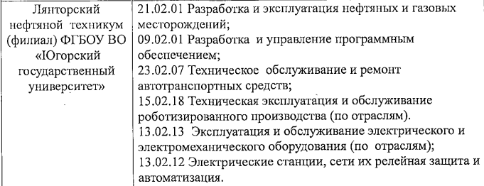 Нефтяного института филиала ФГБОУ ВО ЮГУ!